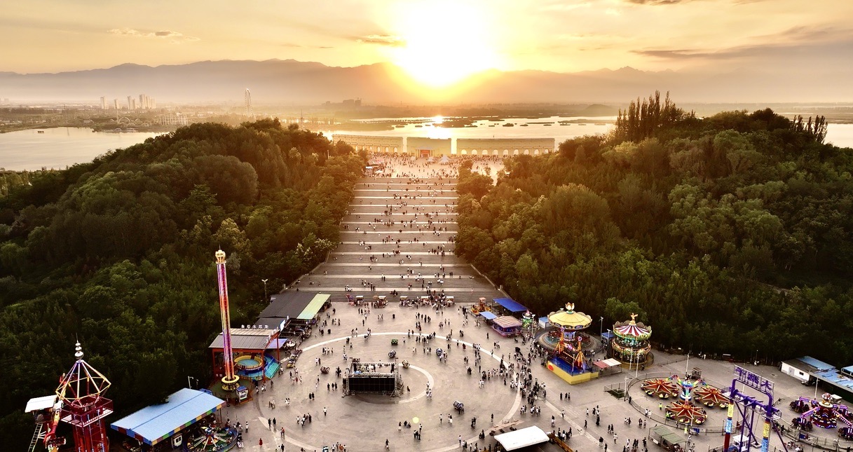 Lanshan Park is an urban park that integrates commerce, tourism, culture, sports, and night tours. It is located in the northern administrative area of Yinchuan City, adjacent to Shuilin Street to the east, Yuehai Park to the west and south, and vast fields to the north. The park covers a total area of 870 acres, with beautiful ecological environment and convenient transportation. It is 8.1 kilometers away from Yinchuan Railway Station and 40.5 kilometers away from Hedong Airport. It is the first choice for urban leisure tourism. In 2023, Yinchuan Culture and Tourism Group will take over the operation of Lanshan Park and continue to build the Lanshan Sunset IP, which has now become a well-known check-in destination in China.