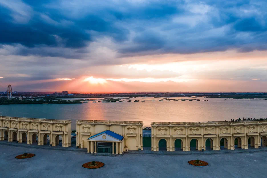 The main design of the Lanshan Outdoor Theater is in the style of an ancient Roman Colosseum, with a fan-shaped structure. It is currently the largest outdoor theater in China, and the football field is built according to international standards. It can hold large-scale gatherings, cultural performances, and various sports activities. Climbing high and admiring the mountains makes one feel refreshed and full of passion. Looking around, one can admire the magnificent scenery of Helan, the spiritual energy of thousands of acres of sea view, and the scenery of Jiangnan on the Great Wall. Therefore, it is called "Lanshan". Viewing the abundant resources, artificial landscapes, and green plant varieties of the mountain and water system, it is the best place to watch the most beautiful sunset and has become a popular spot for internet celebrities both inside and outside the region.